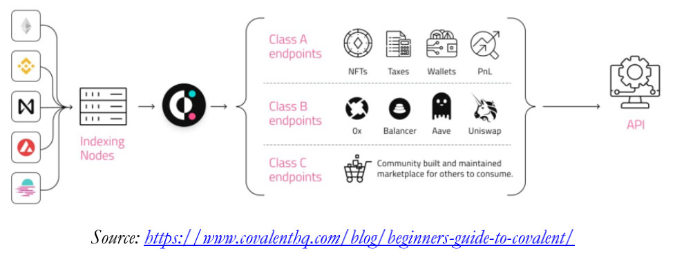 Covalent的功能看起来与The Graph很相似,但它在一些方面有些区别。例如,The Graph需要将数据的子集转换为子图,然后才能进行查询。与此同时,Covalent将对区块链进行整体索引,从而为用户提供更大量的细粒度数据。此外,Covalent已经扩展到以太坊之外。截至2021年4月,Covelant支持来自其他四个区块链的数据,包括Fantom、Binance Smart Chain、Polygon和Avalanche。