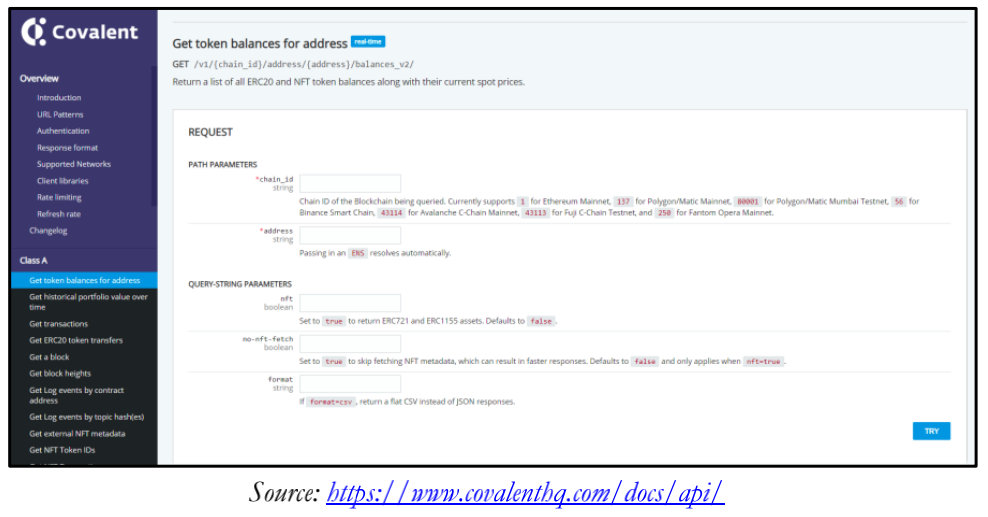 你可以使用A类端点来检索不受网络影响的区块链数据。简而言之,这是适用于所有网络的一般数据,如余额、交易和代币持有人。另一方面,你可以使用B类端点来返回区块链上特定协议的值。例如,你可以从Uniswap或PancakeSwap查询数据,这两个去中心化的交易所都隔离在各自的网络上。