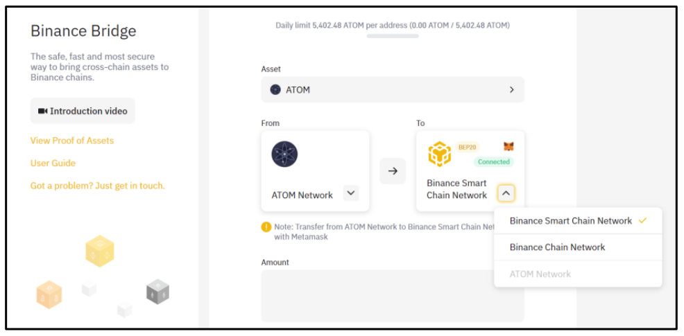 使用Binance Bridge,用户可以将资金转入或转出到各种区块链,如以太坊、Tron或BSC网络。每个特定的资产只支持在特定的区块链间转移。例如,其他区块链的原生代币,如ATOM和ONT,仅限于在BSC、Binance Chain或其原生网络之间转移。每种资产每天可以转移的数量是有限制的。