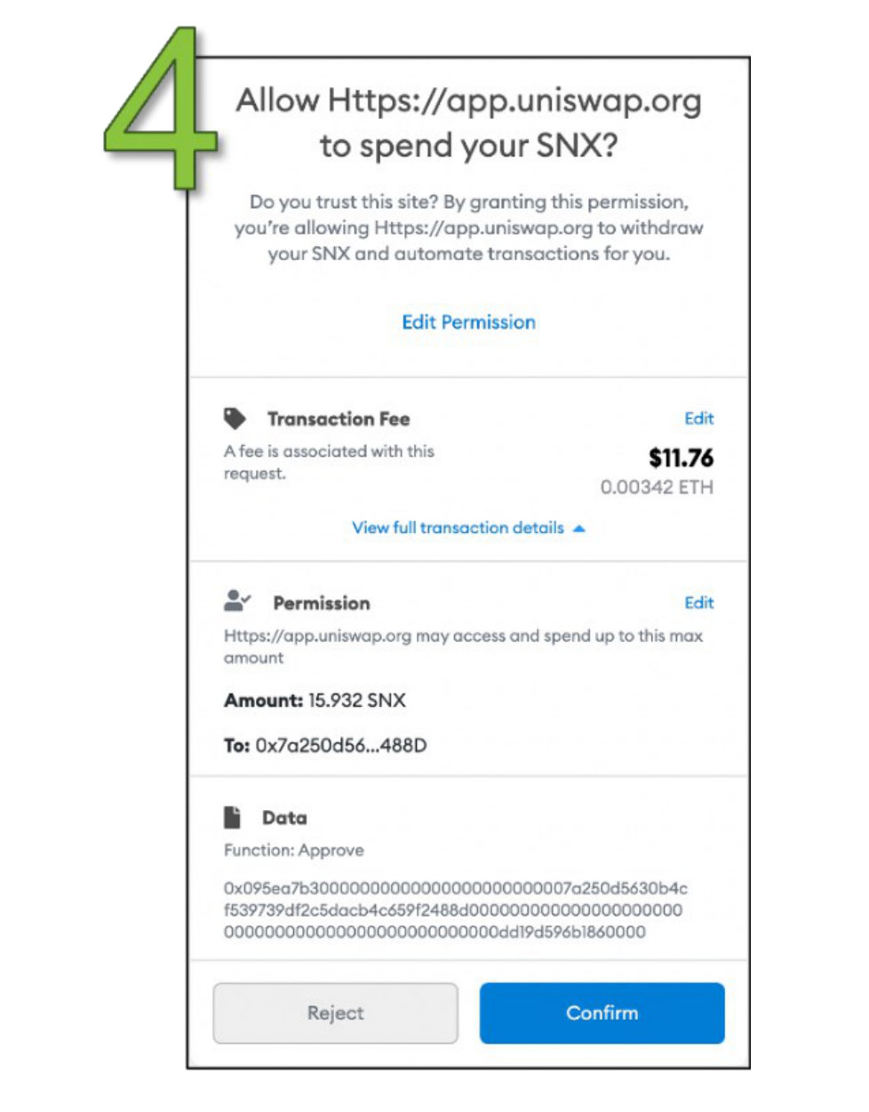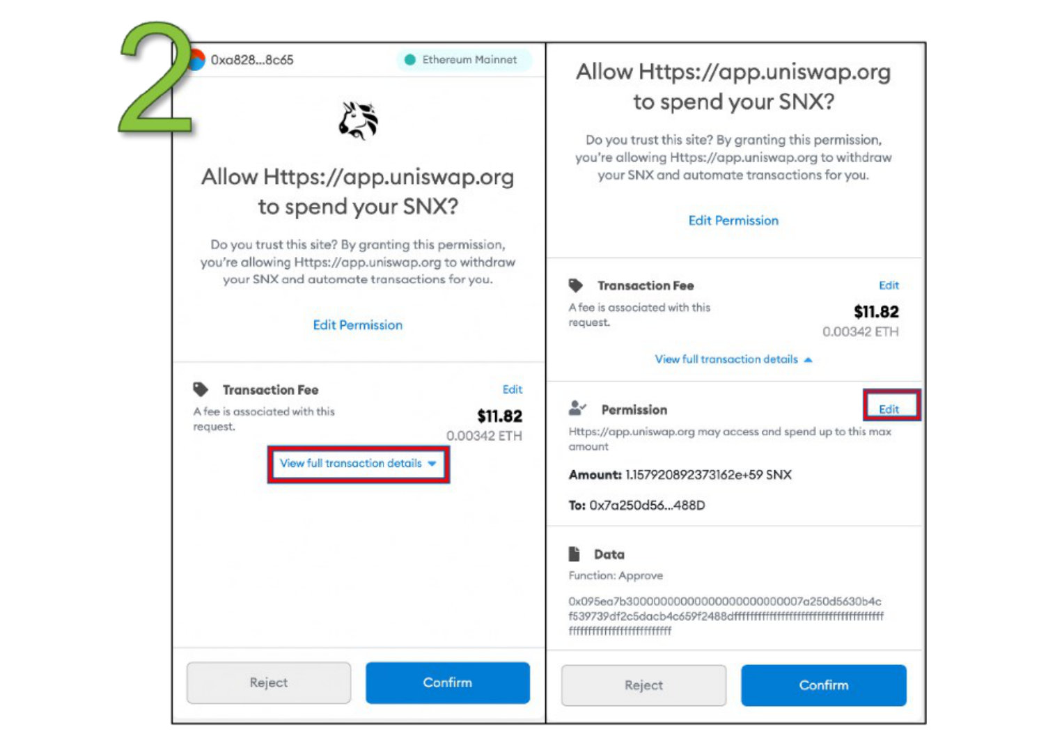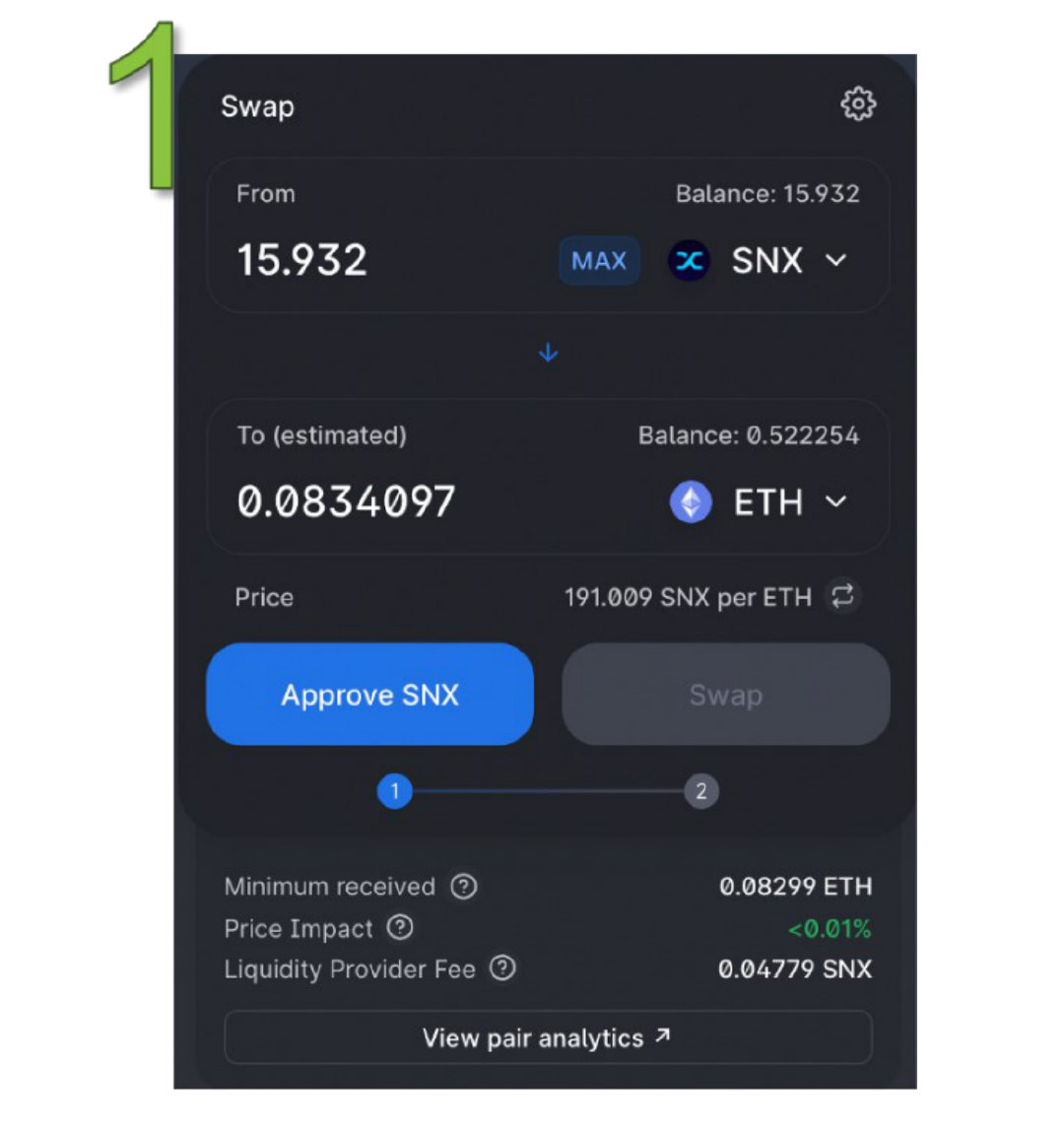 在本例中,我们计划在Uniswap上将15.932个SNX交换为0.0834个ETH。