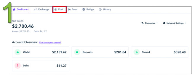 如果我们拥有收益耕作机会的相关资产,将出现一个绿色的 "Stake"按钮