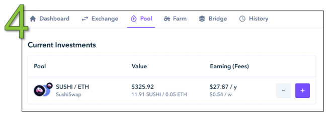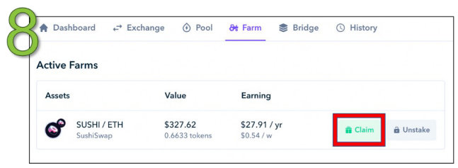 在本节中,我们将对收益耕作进行逐步指导。使用本章中较早的SUSHI/ETH例子,我们将展示如何使用Zapper进行收益耕作。