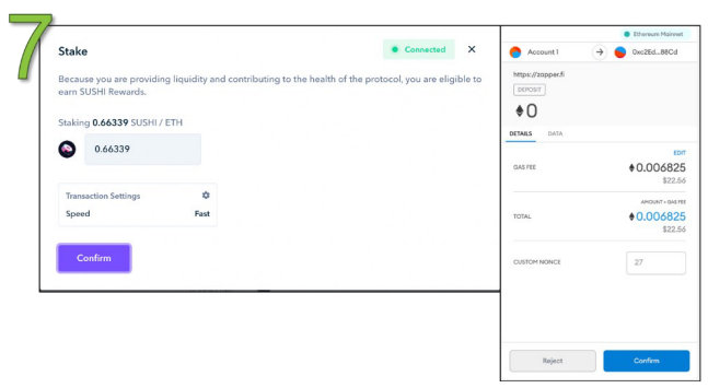 批准该交易。这允许Zapper访问我们的SUSHI/ETH LP代币