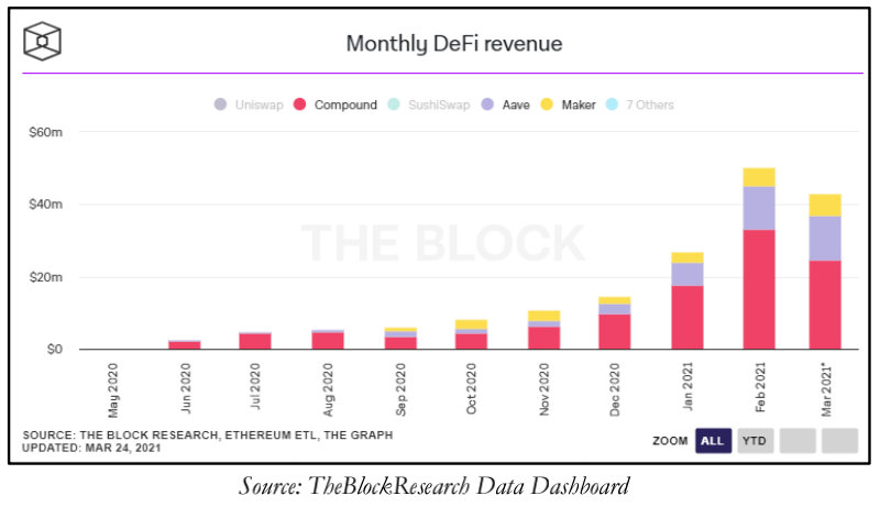 截至2021年4月,Compound在借贷协议中产生的收入最高。见下图: