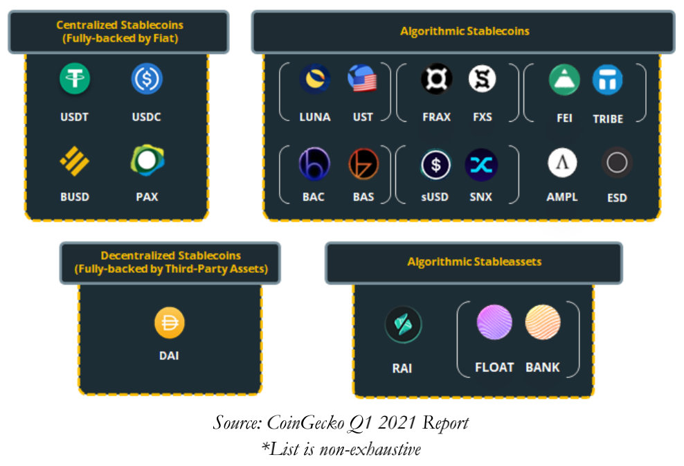 如果我们要对目前的算法稳定币或算法稳定资产市场进行分类,下面的插图提供了一个简洁的概述: